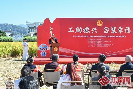 东南网11月21日讯(本网记者 施远圻 通讯员 王子凡)初冬的永春,十里桃源稻浪翻滚,卿园沃野生机盎然,一幅宜居宜业和美乡村的生动画卷在闽南大地上徐徐铺展。11月21日,由泉州市总工会主办,泉州市劳模协会、永春县总工会承办的“工助振兴 会聚幸福”劳模工匠联学联创暨主题宣讲进乡村活动。