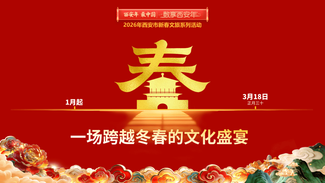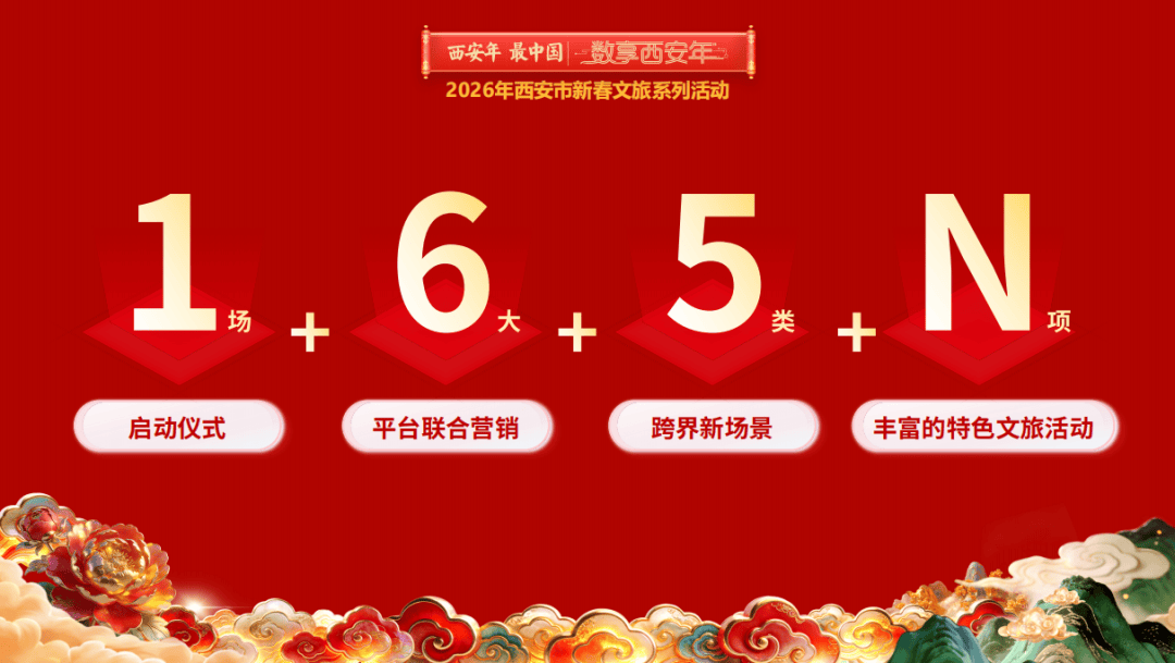 “西安年·最中国——数享西安年”2026年西安市新春文旅系列活动自1月起,将持续至3月18日(农历正月三十),通过打造“1+6+5+N”的丰富内容体系,为市民游客呈现一场“可观、可感、可沉浸、可带走”的数字中国年。