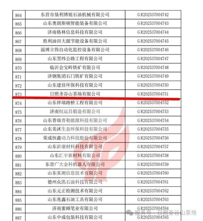 近日,全国高新技术企业认定管理工作领导小组办公室发布山东省认定机构2025年认定报备的第二批高新技术企业认定名单,日照圣谷山茶场有限公司(以下简称“日照圣谷山茶场”)荣耀上榜,获国家高新技术企业的认定,证书编号:1,有效期三年。
